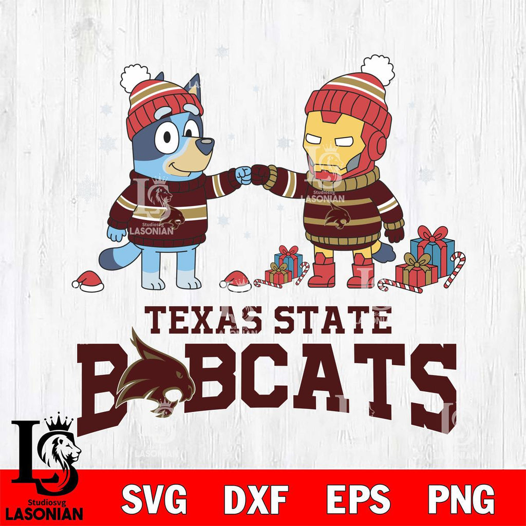 Texas State Bobcats Bluey With Iron man Christmas File Cut, NCAA SVG DXF EPS PNG FILE, Digital Download,Instant Download, Silhouette
