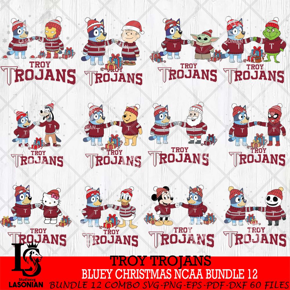 Troy Trojans Bluey friends christmas NCAA Bundle File Cut,Bundle NCAA SVG DXF EPS PNG FILE, Digital Download,Instant Download, Silhouette
