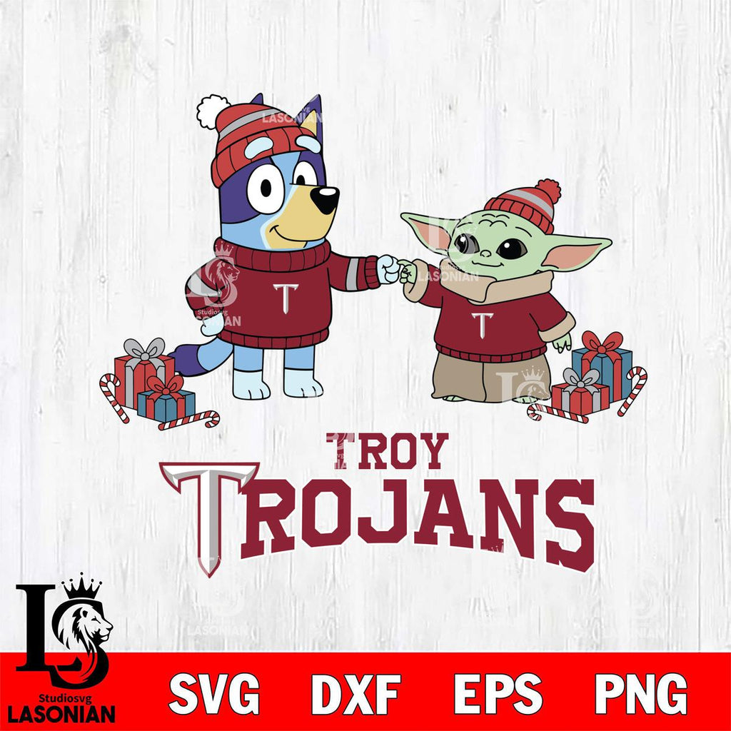 Troy Trojans Bluey With Yoda Christmas File Cut, NCAA SVG DXF EPS PNG FILE, Digital Download,Instant Download, Silhouette