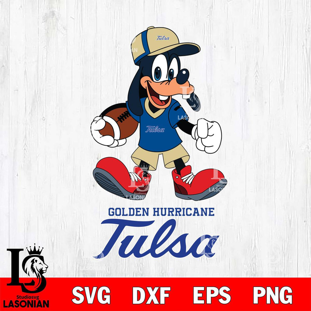 Plus, you can print these designs on a wide range of surfaces such as mugs, t-shirts, tumblers, flags, and more. Unleash your creativity and personalize your world with Tulsa Golden Hurricane Goofy Football Player