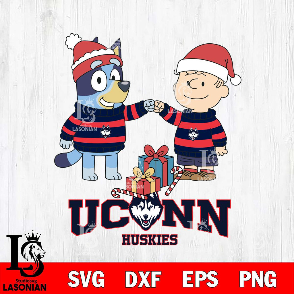 UConn Huskies Bluey With Charlie Brown Christmas File Cut, NCAA SVG DXF EPS PNG FILE, Digital Download,Instant Download, Silhouette