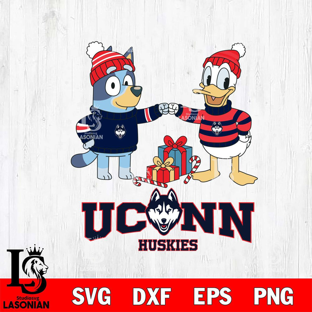 UConn Huskies Bluey With Donald Duck Christmas File Cut, NCAA SVG DXF EPS PNG FILE, Digital Download,Instant Download, Silhouette