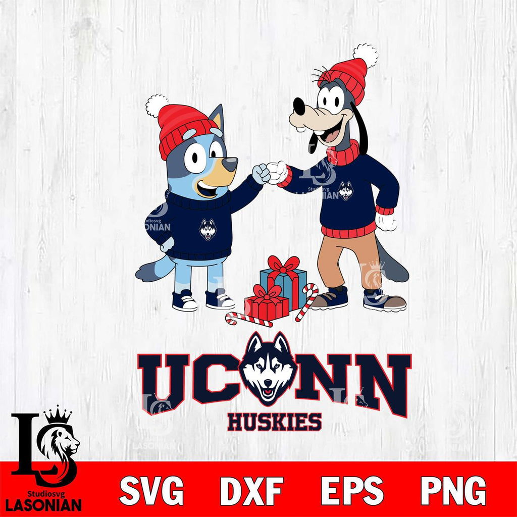 UConn Huskies Bluey With Goofy Christmas File Cut, NCAA SVG DXF EPS PNG FILE, Digital Download,Instant Download, Silhouette