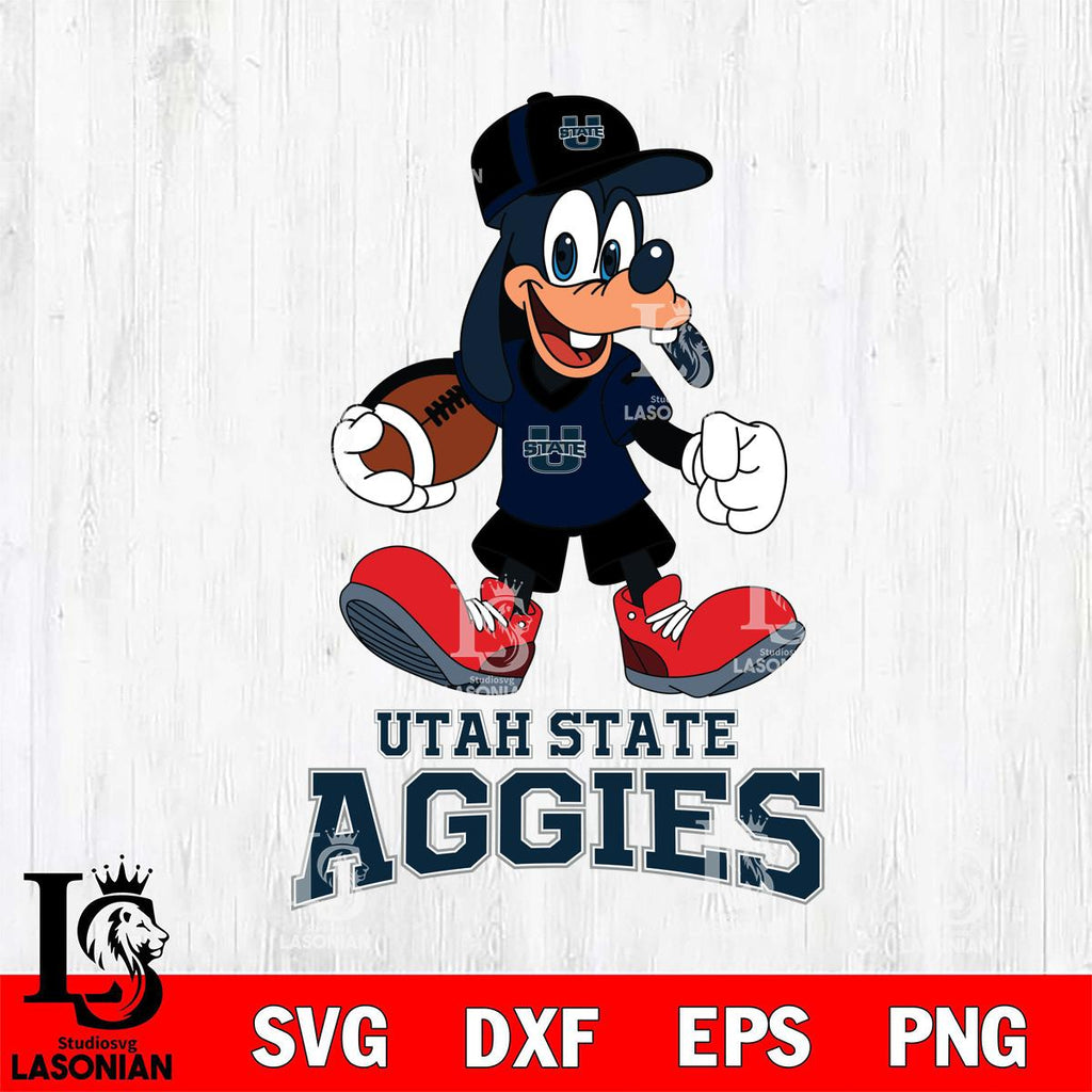 Plus, you can print these designs on a wide range of surfaces such as mugs, t-shirts, tumblers, flags, and more. Unleash your creativity and personalize your world with Utah State Aggies Goofy Football Player