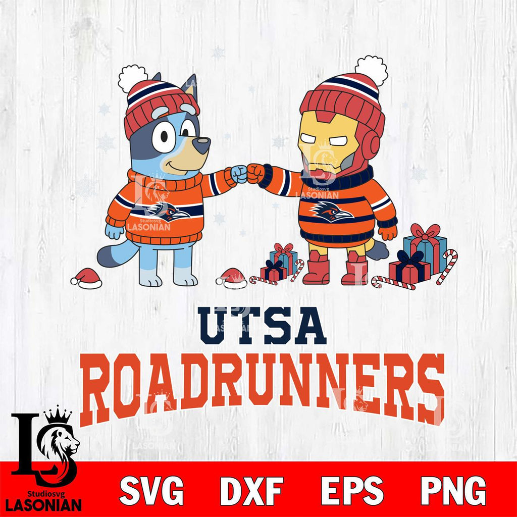 UTSA Roadrunners Bluey With Iron man Christmas File Cut, NCAA SVG DXF EPS PNG FILE, Digital Download,Instant Download, Silhouette