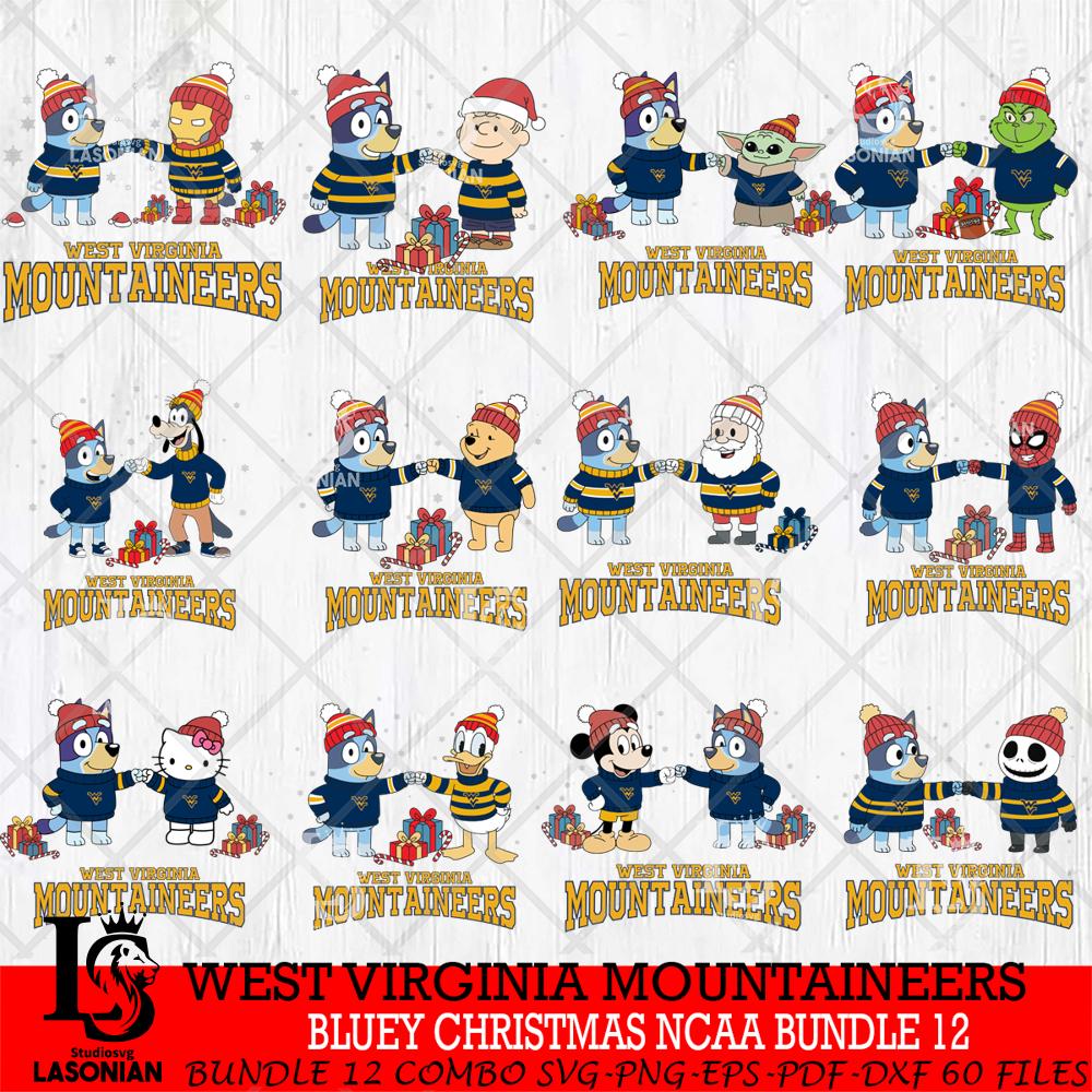 Plus, you can print these designs on a wide range of surfaces such as mugs, t-shirts, tumblers, flags, and more. Unleash your creativity and personalize your world with West Virginia Mountaineers Bluey friends christmas NCAA Bundle