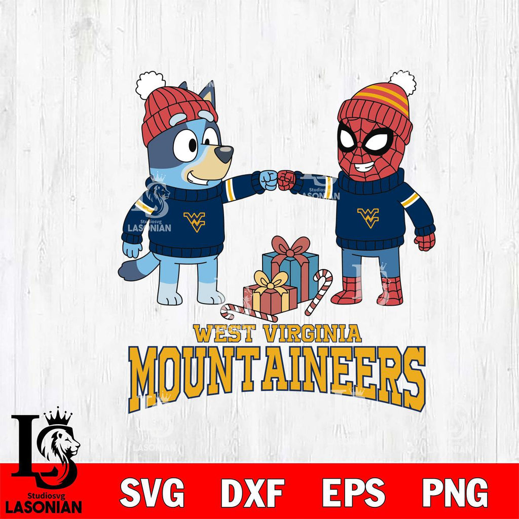 West Virginia Mountaineers Bluey With Spider man Christmas File Cut, NCAA SVG DXF EPS PNG FILE, Digital Download,Instant Download, Silhouette