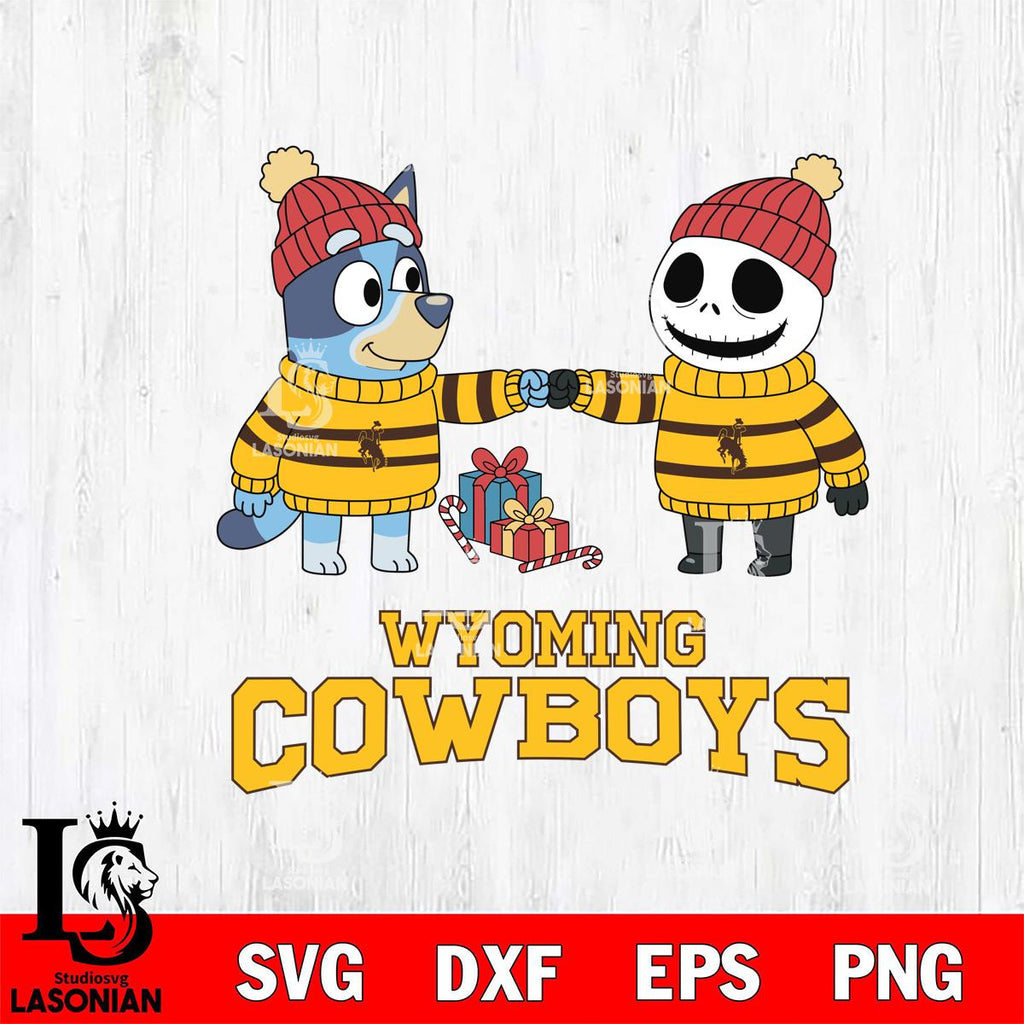 Wyoming Cowboys Bluey With Jack Skellington Christmas File Cut, NCAA SVG DXF EPS PNG FILE, Digital Download,Instant Download, Silhouette