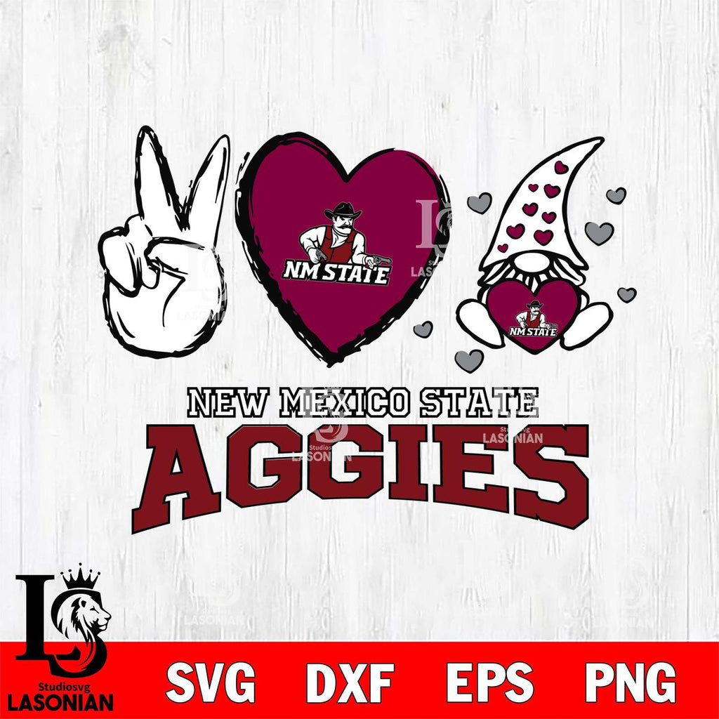 Plus, you can print these designs on a wide range of surfaces such as mugs, t-shirts, tumblers, flags, and more. Unleash your creativity and personalize your world with New Mexico State Aggies Gnomes Peace & Love
