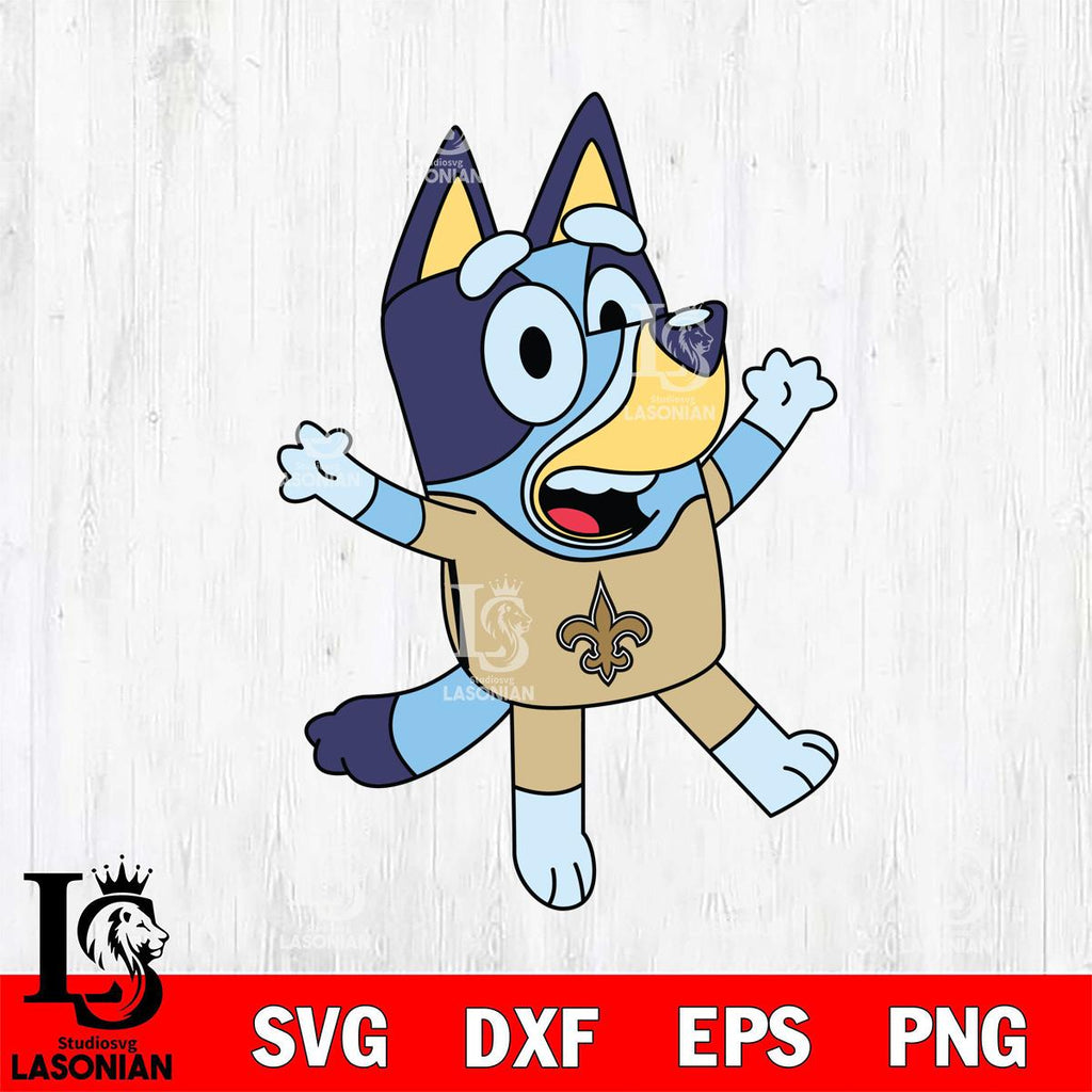 Plus, you can print these designs on a wide range of surfaces such as mugs, t-shirts, tumblers, flags, and more. Unleash your creativity and personalize your world with New Orleans Saints Bluey 3 NFL