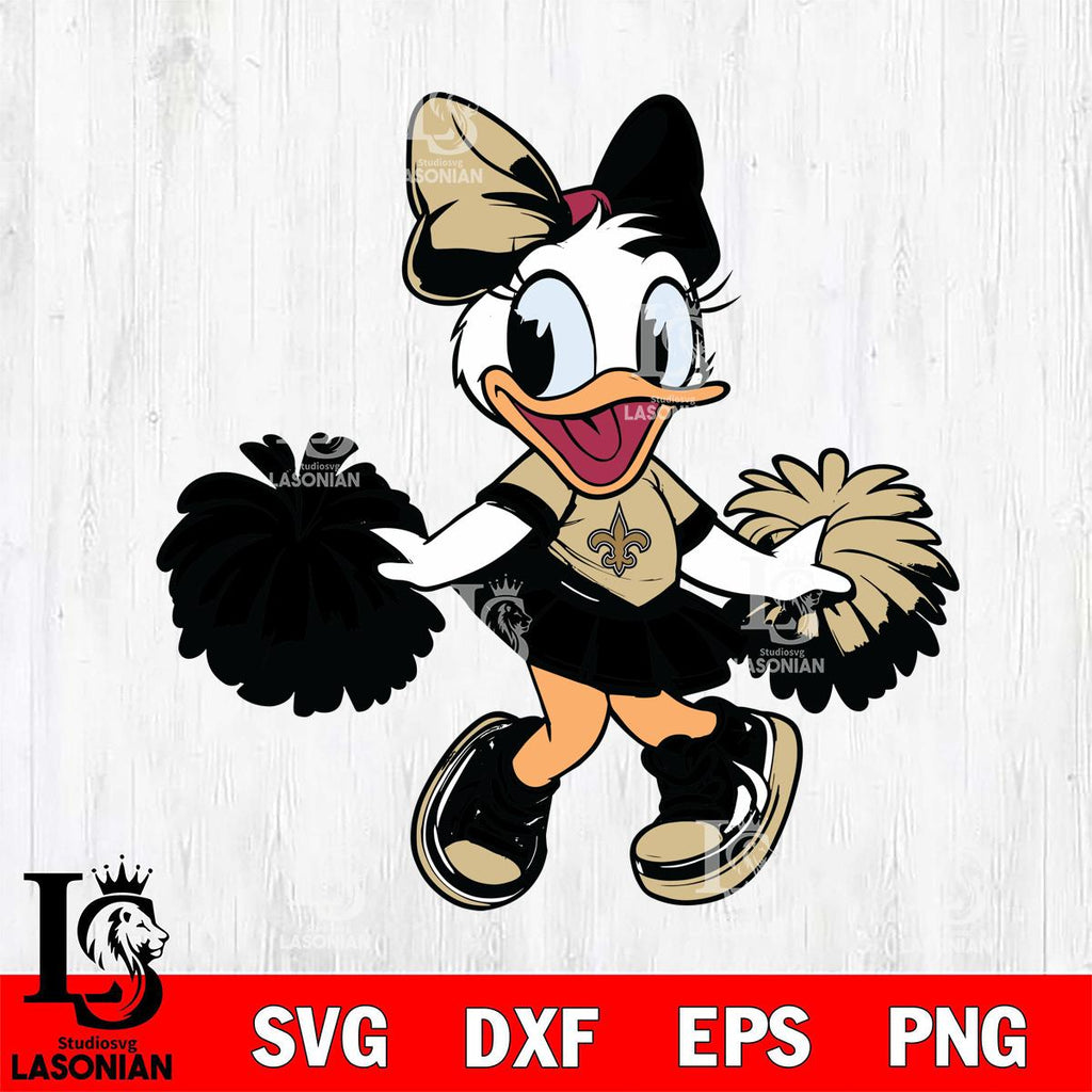 Plus, you can print these designs on a wide range of surfaces such as mugs, t-shirts, tumblers, flags, and more. Unleash your creativity and personalize your world with New Orleans Saints Daisy Duck Cheerleader