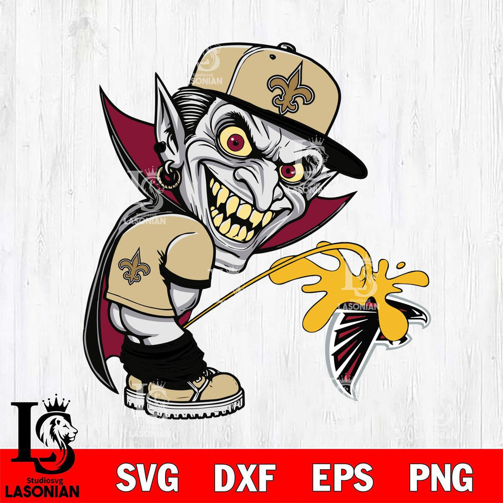►With the New Orleans Saints Dracula Piss On Atlanta Falcons, you can let your creativity run wild. This INSTANT DOWNLOAD package includes a ZIP folder containing the following: