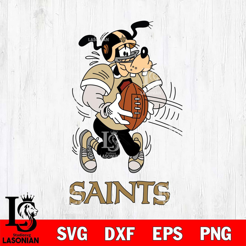 Plus, you can print these designs on a wide range of surfaces such as mugs, t-shirts, tumblers, flags, and more. Unleash your creativity and personalize your world with New Orleans Saints Goofy Sport Football