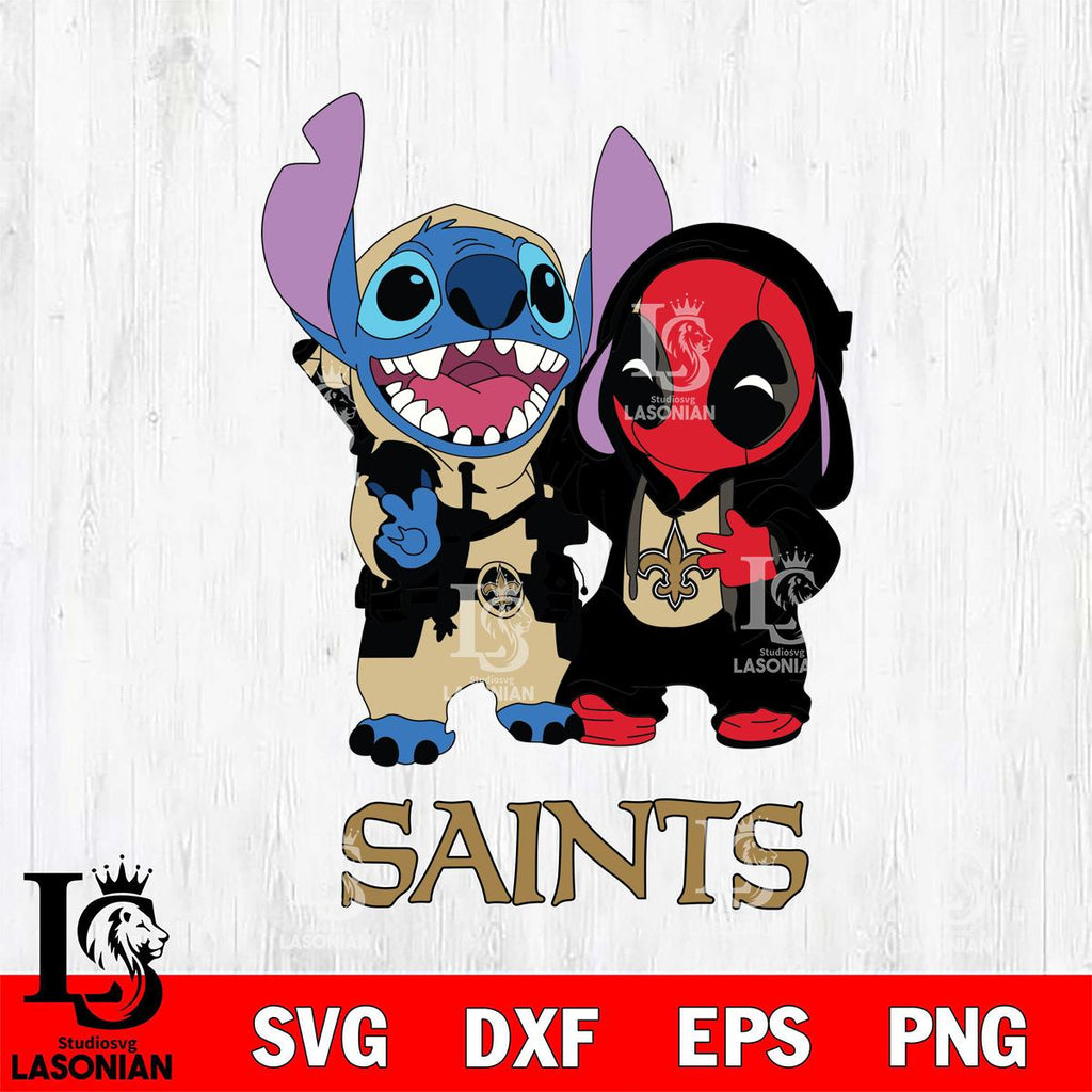 New Orleans Saints Stitch And Deadpool Cute Svg Eps Dxf Png File, Digital Download, Instant Download