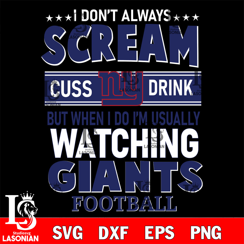 I don't always scream cuss drink but when i do i'm usually watching New York Giants svg eps dxf png file, Digital Download , Instant Download