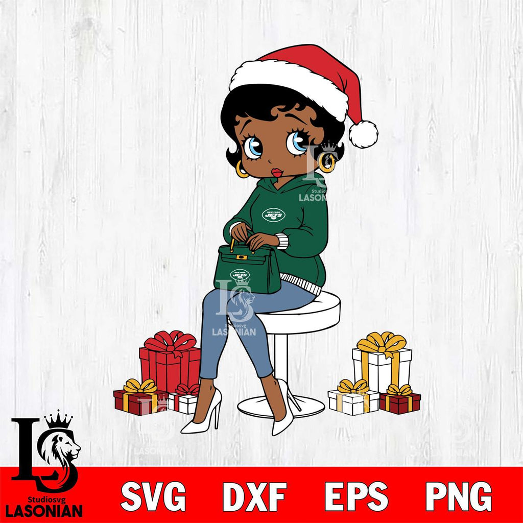 Plus, you can print these designs on a wide range of surfaces such as mugs, t-shirts, tumblers, flags, and more. Unleash your creativity and personalize your world with New York Jets Betty Boop Sit Christmas