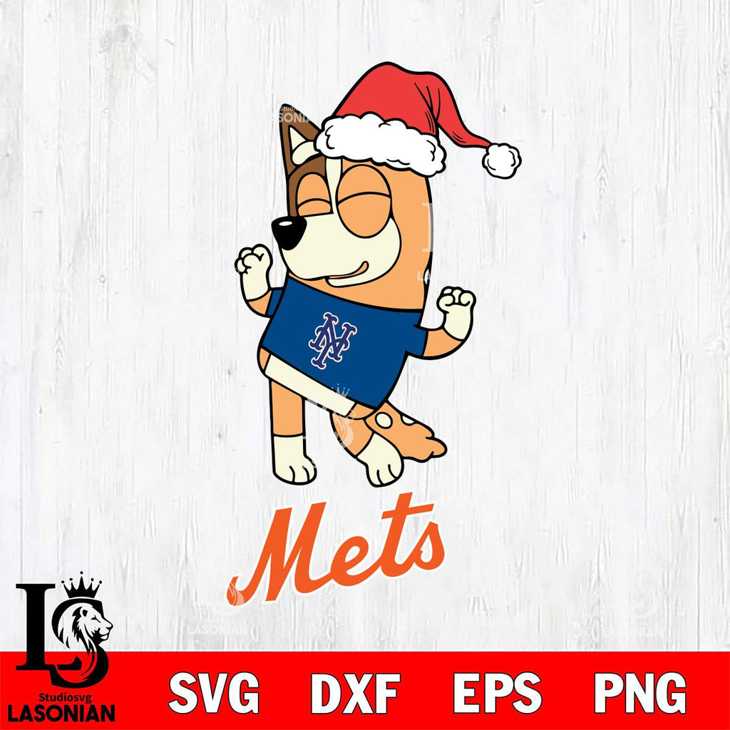 Plus, you can print these designs on a wide range of surfaces such as mugs, t-shirts, tumblers, flags, and more. Unleash your creativity and personalize your world with New York Mets Bluey Chilli Happy Christmas