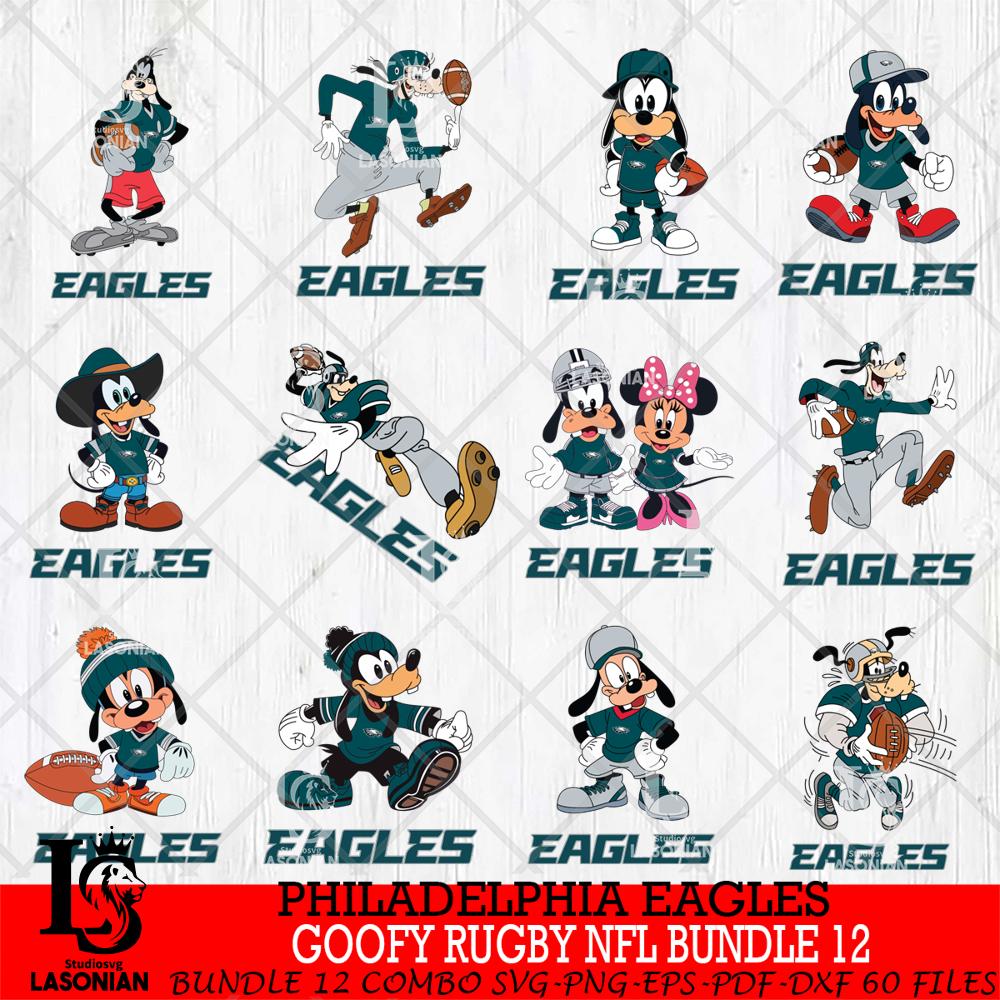 Plus, you can print these designs on a wide range of surfaces such as mugs, t-shirts, tumblers, flags, and more. Unleash your creativity and personalize your world with Philadelphia Eagles Goofy Rugby NFL Bundle 12