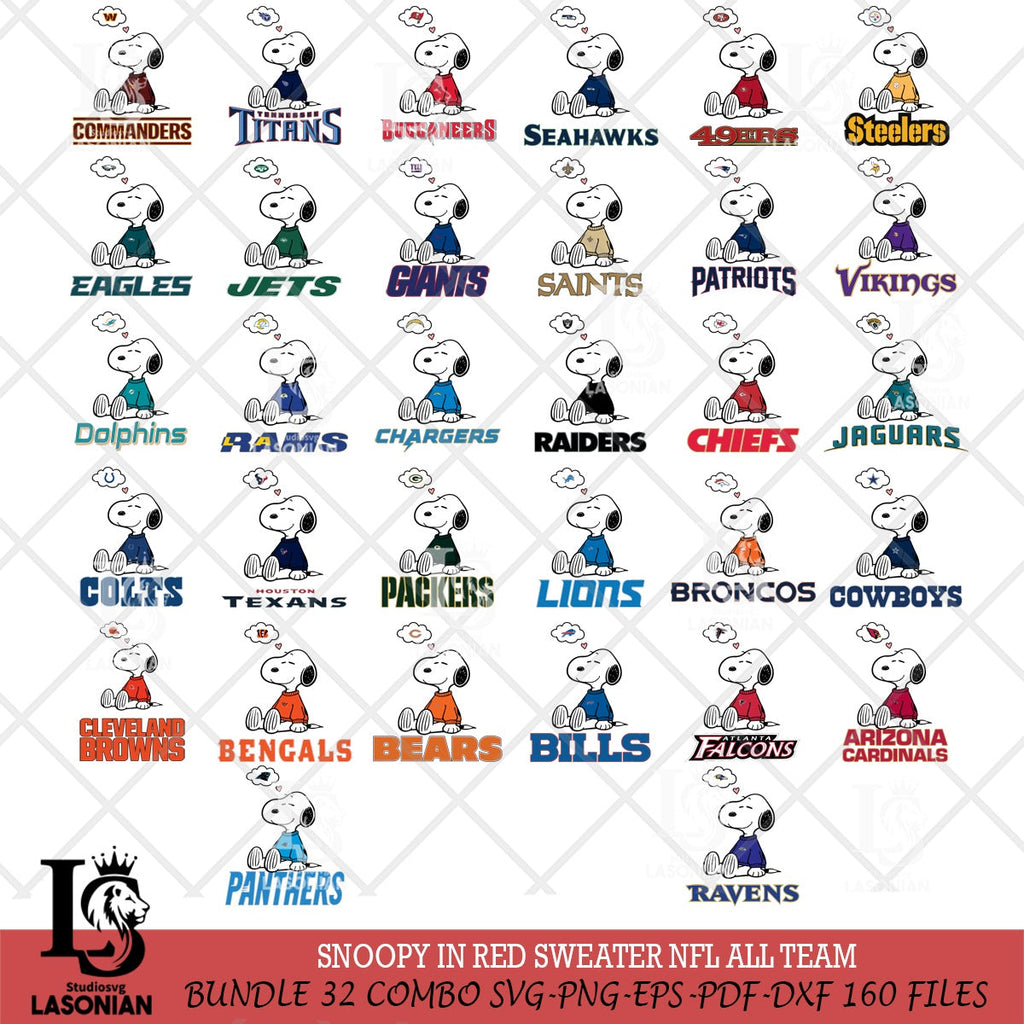 Snoopy in Red Sweater NFL Digital Download, NFL SVG DXF EPS PNG PDF File, Stitch File cut , Criucut , Silhouette