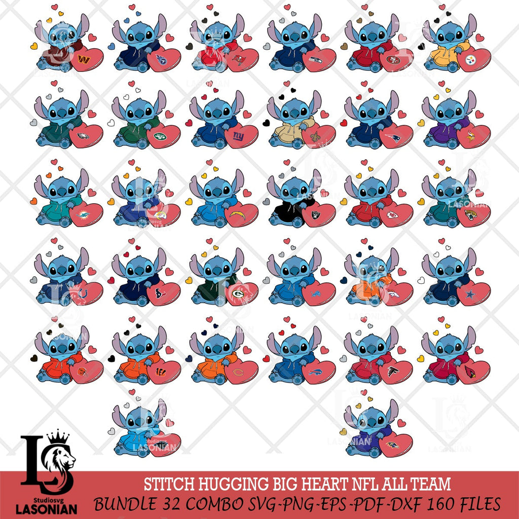 Buy now Stitch Hugging Big Heart NFL File cut , Criucut , Digital Download, NFL SVG DXF EPS PNG PDF File, Instant Download
