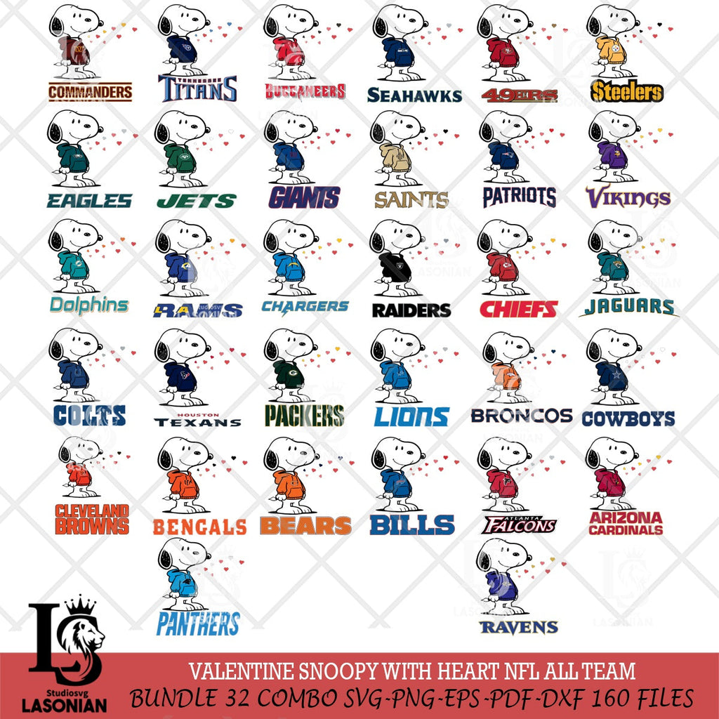 Valentine Snoopy with Heart NFL Digital Download, NFL SVG DXF EPS PNG PDF File, Stitch File cut , Criucut , Silhouette is a digital download, no physical product will be shipped. Once you've downloaded the file, you can embark on a variety of personal projects.
