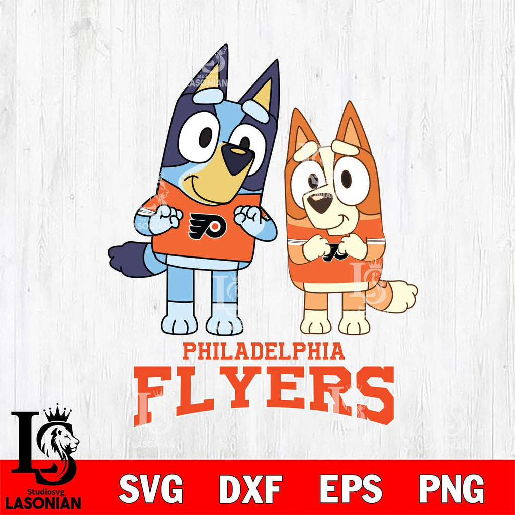 Plus, you can print these designs on a wide range of surfaces such as mugs, t-shirts, tumblers, flags, and more. Unleash your creativity and personalize your world with Philadelphia Flyers Bluey & Bingo 6