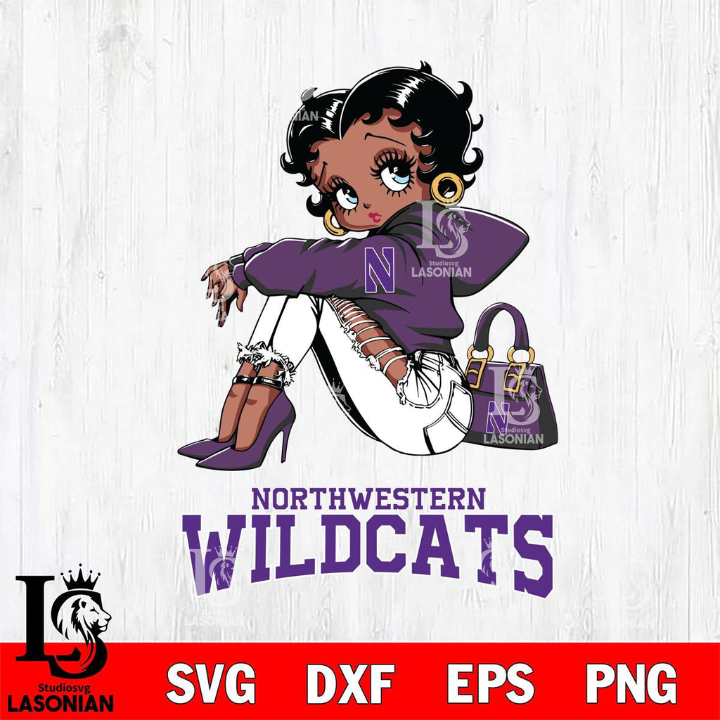 Plus, you can print these designs on a wide range of surfaces such as mugs, t-shirts, tumblers, flags, and more. Unleash your creativity and personalize your world with Northwestern Wildcats Betty Boop Black Fan Girl