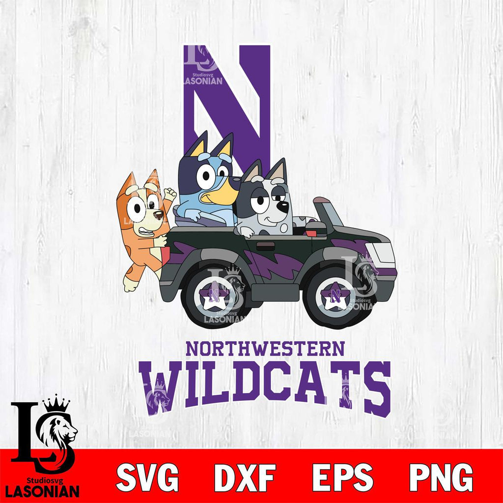Northwestern Wildcats Bluey friends car Svg Eps Dxf Png File, NCAA svg, Digital Download, Instant Download