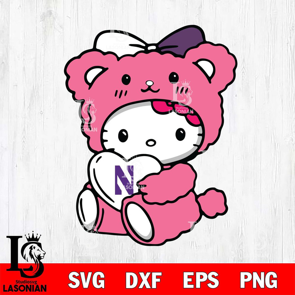 Northwestern Wildcats Cute Hello Kitty 3 Svg Eps Dxf Png File, Digital Download, Instant Download