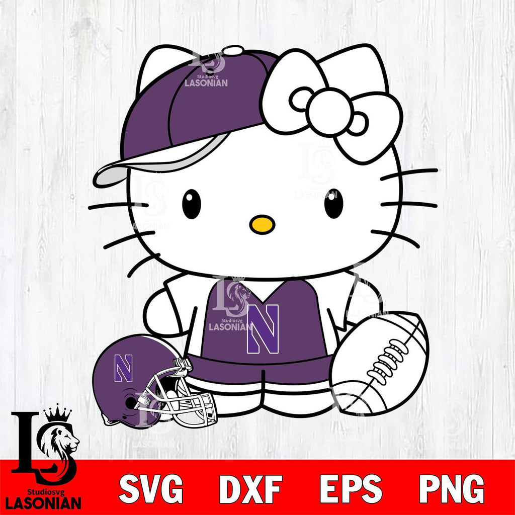 Northwestern Wildcats Cute Hello Kitty Football 4 Svg Eps Dxf Png File, NCAA svg, Digital Download, Instant Download