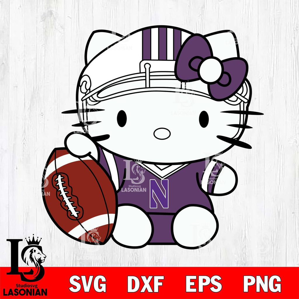 Northwestern Wildcats Cute Hello Kitty Football 5 Svg Eps Dxf Png File, NCAA svg, Digital Download, Instant Download