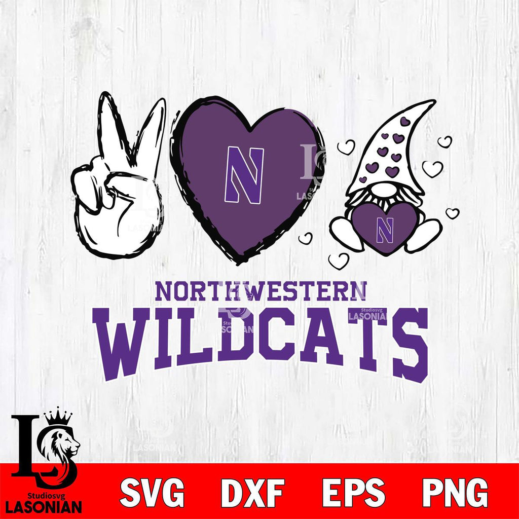 Northwestern Wildcats Gnomes Peace & Love Svg Eps Dxf Png File, Digital Download, Instant Download