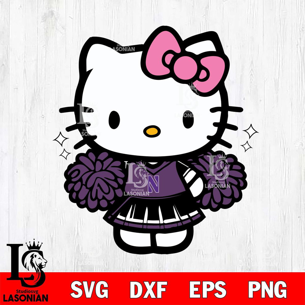 Plus, you can print these designs on a wide range of surfaces such as mugs, t-shirts, tumblers, flags, and more. Unleash your creativity and personalize your world with Northwestern Wildcats Hello Kitty Cheerleader