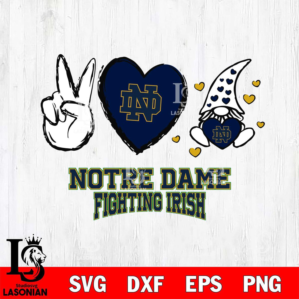 Notre Dame Fighting Irish Gnomes Peace & Love Svg Eps Dxf Png File, Digital Download, Instant Download