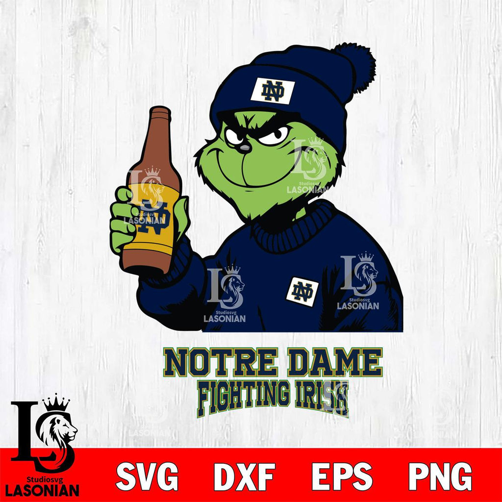 Notre Dame Fighting Irish Grinch Drinking Beer Christmas