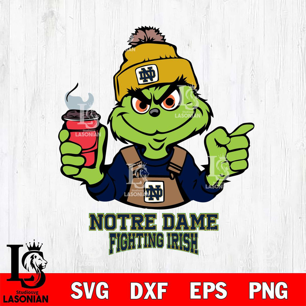 Notre Dame Fighting Irish Grinch with coffee Svg Eps Dxf Png File, Digital Download, Instant Download