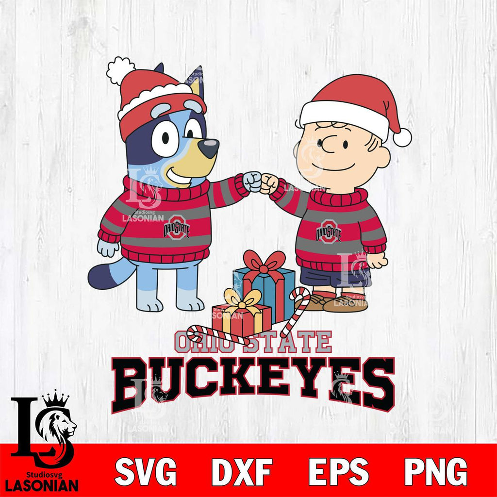 Ohio State Buckeyes Bluey With Charlie Brown Christmas File Cut, NCAA SVG DXF EPS PNG FILE, Digital Download,Instant Download, Silhouette