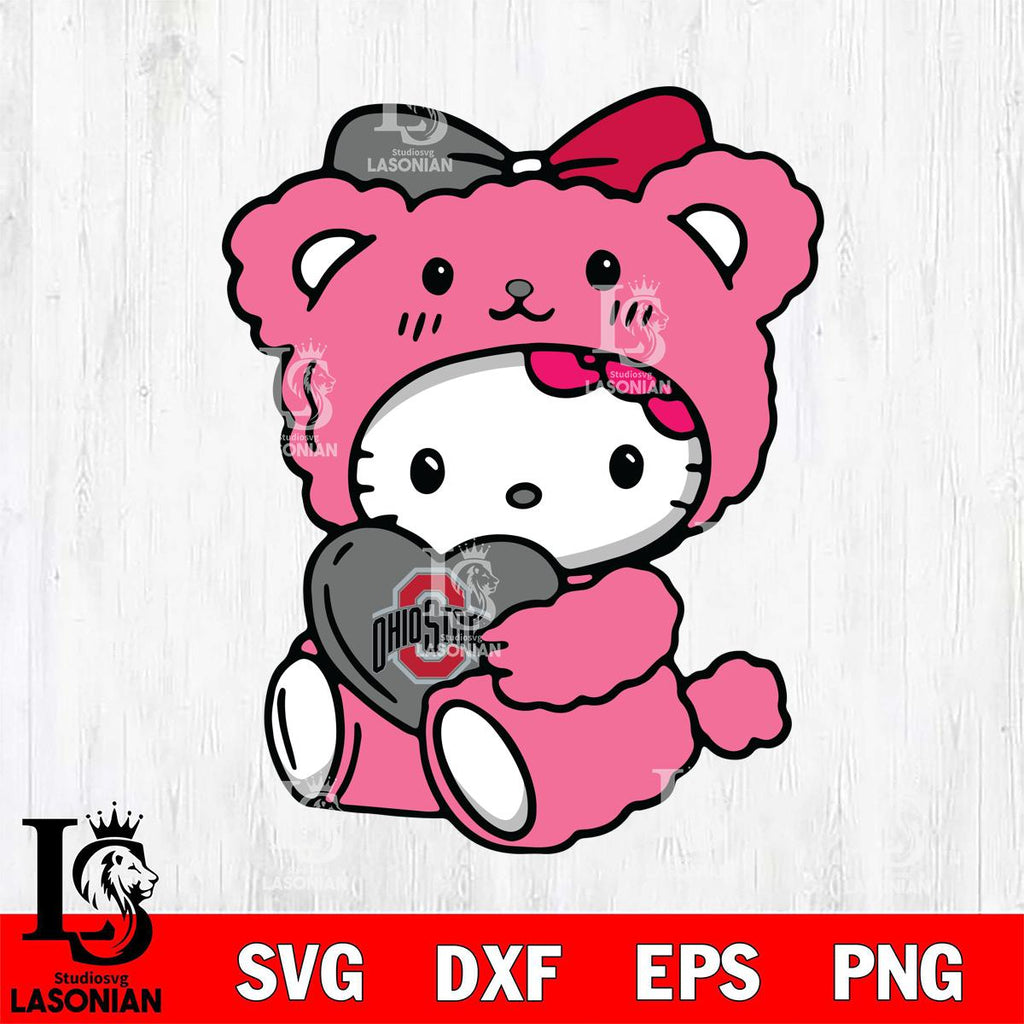 Ohio State Buckeyes Cute Hello Kitty 3 Svg Eps Dxf Png File, Digital Download, Instant Download
