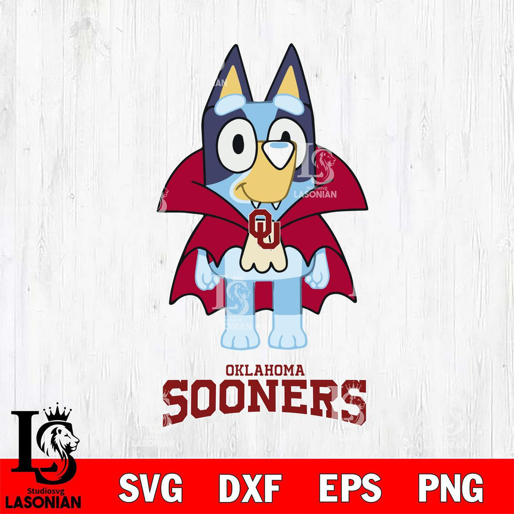 ►With the Oklahoma Sooners Bluey Dracula Halloween, you can let your creativity run wild. This INSTANT DOWNLOAD package includes a ZIP folder containing the following: