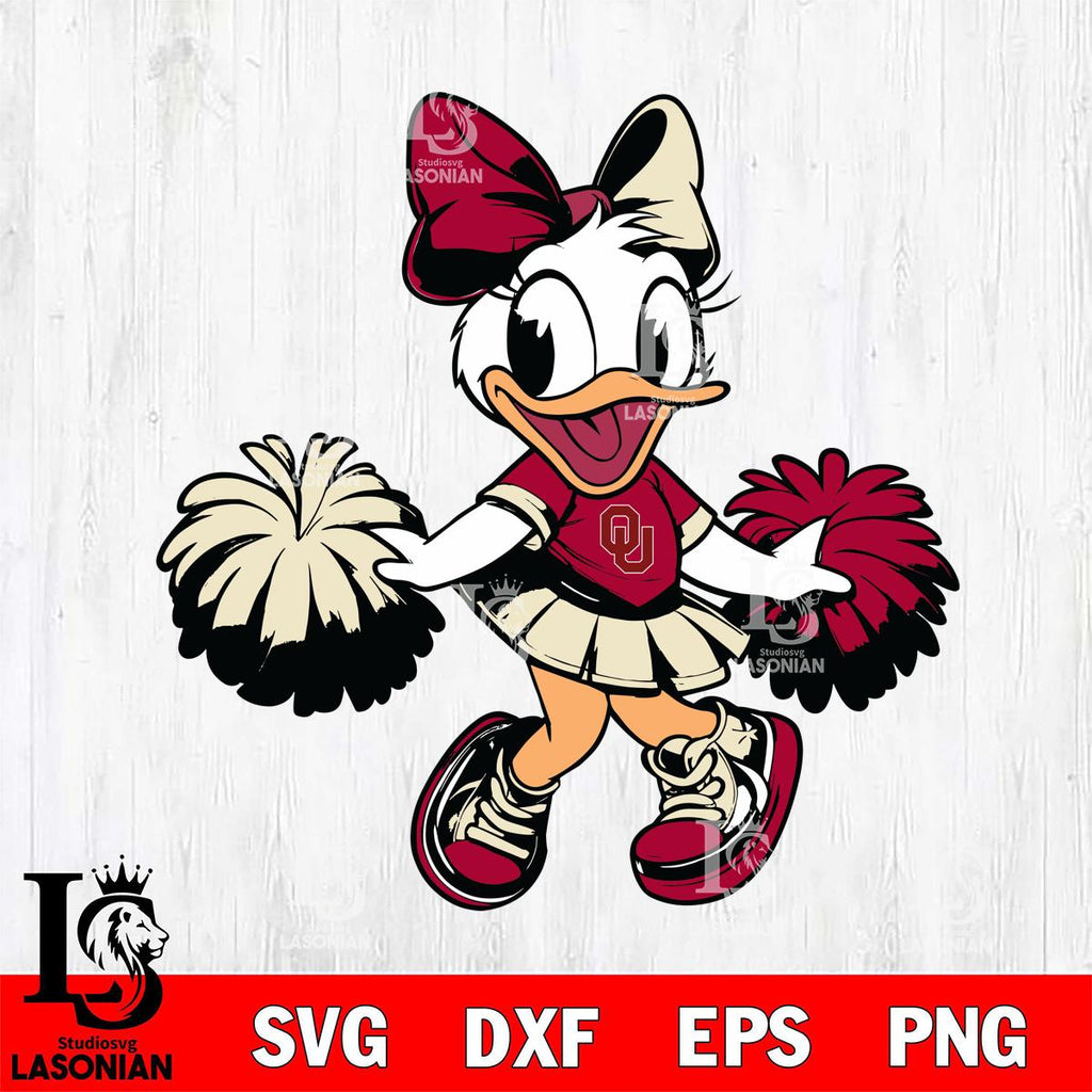 Plus, you can print these designs on a wide range of surfaces such as mugs, t-shirts, tumblers, flags, and more. Unleash your creativity and personalize your world with Oklahoma Sooners Daisy Duck Cheerleader