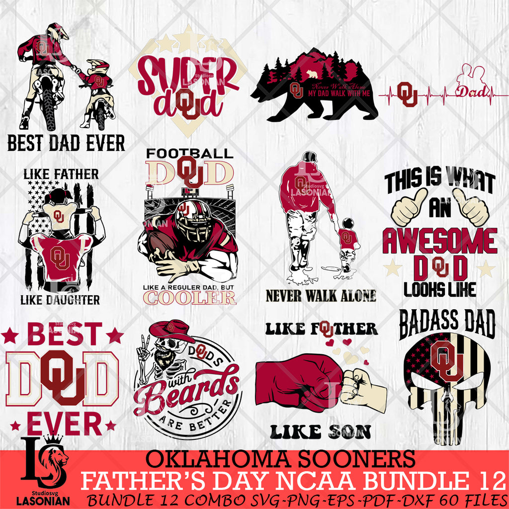 Oklahoma Sooners Fathers Day NCAA Bundle 12 Svg Eps Dxf Png File, Digital Download, Instant Download
