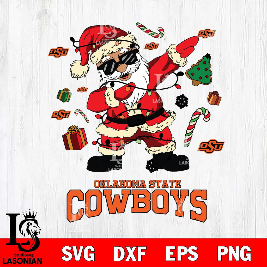 Plus, you can print these designs on a wide range of surfaces such as mugs, t-shirts, tumblers, flags, and more. Unleash your creativity and personalize your world with Oklahoma State Cowboys Santa Claus Football