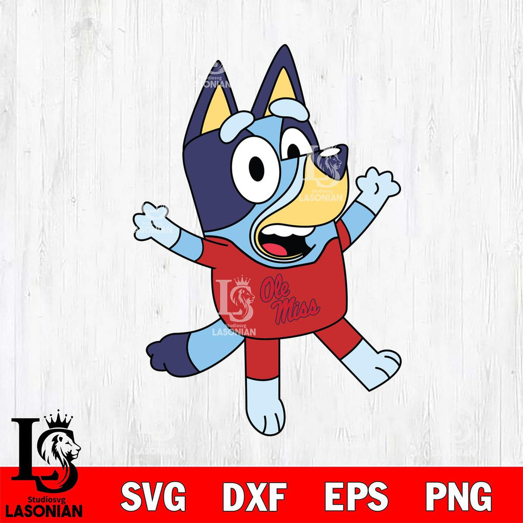 Plus, you can print these designs on a wide range of surfaces such as mugs, t-shirts, tumblers, flags, and more. Unleash your creativity and personalize your world with Ole Miss Rebels Bluey 3