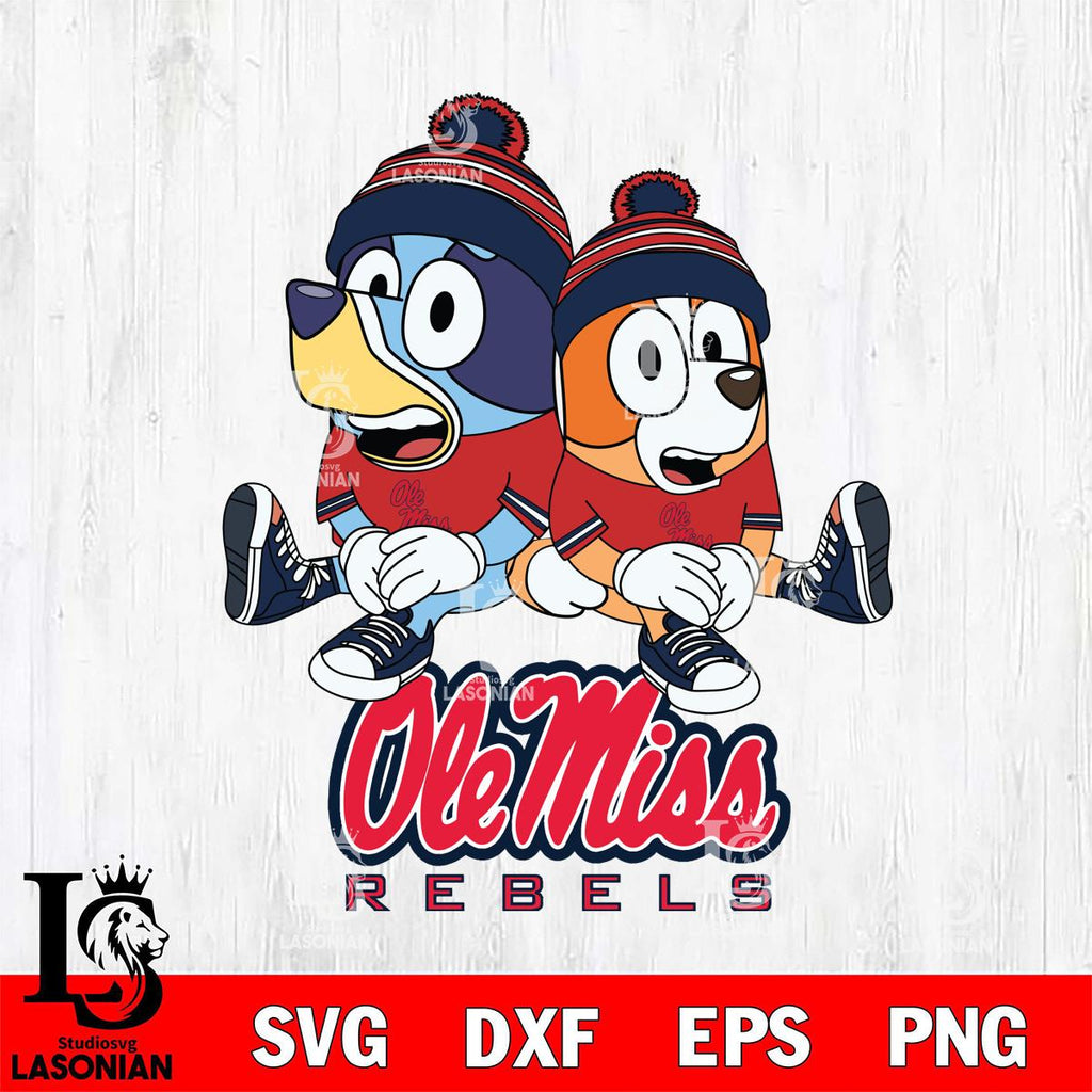 Plus, you can print these designs on a wide range of surfaces such as mugs, t-shirts, tumblers, flags, and more. Unleash your creativity and personalize your world with Ole Miss Rebels Bluey & Bingo 8