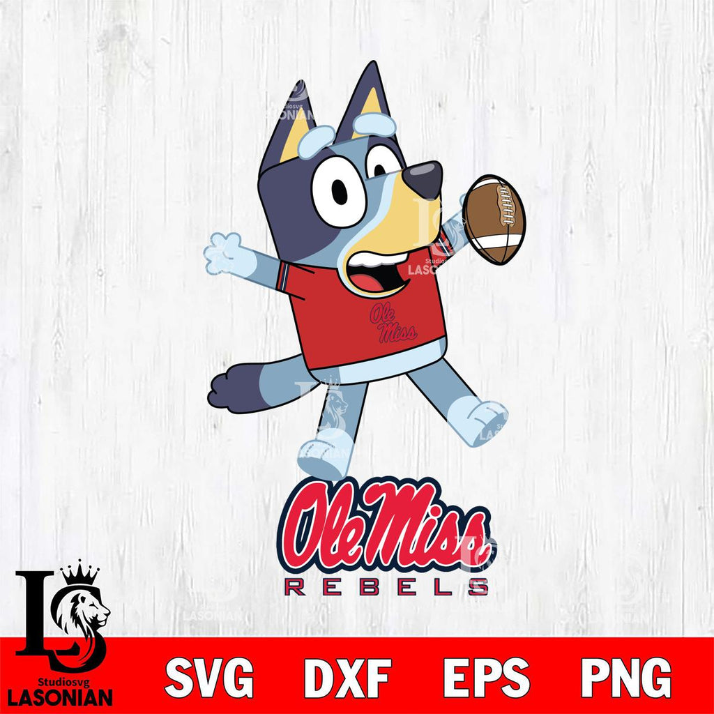 Plus, you can print these designs on a wide range of surfaces such as mugs, t-shirts, tumblers, flags, and more. Unleash your creativity and personalize your world with Ole Miss Rebels Bluey Sport Football
