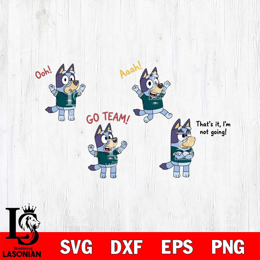 Plus, you can print these designs on a wide range of surfaces such as mugs, t-shirts, tumblers, flags, and more. Unleash your creativity and personalize your world with Philadelphia Eagles Bluey Go Team