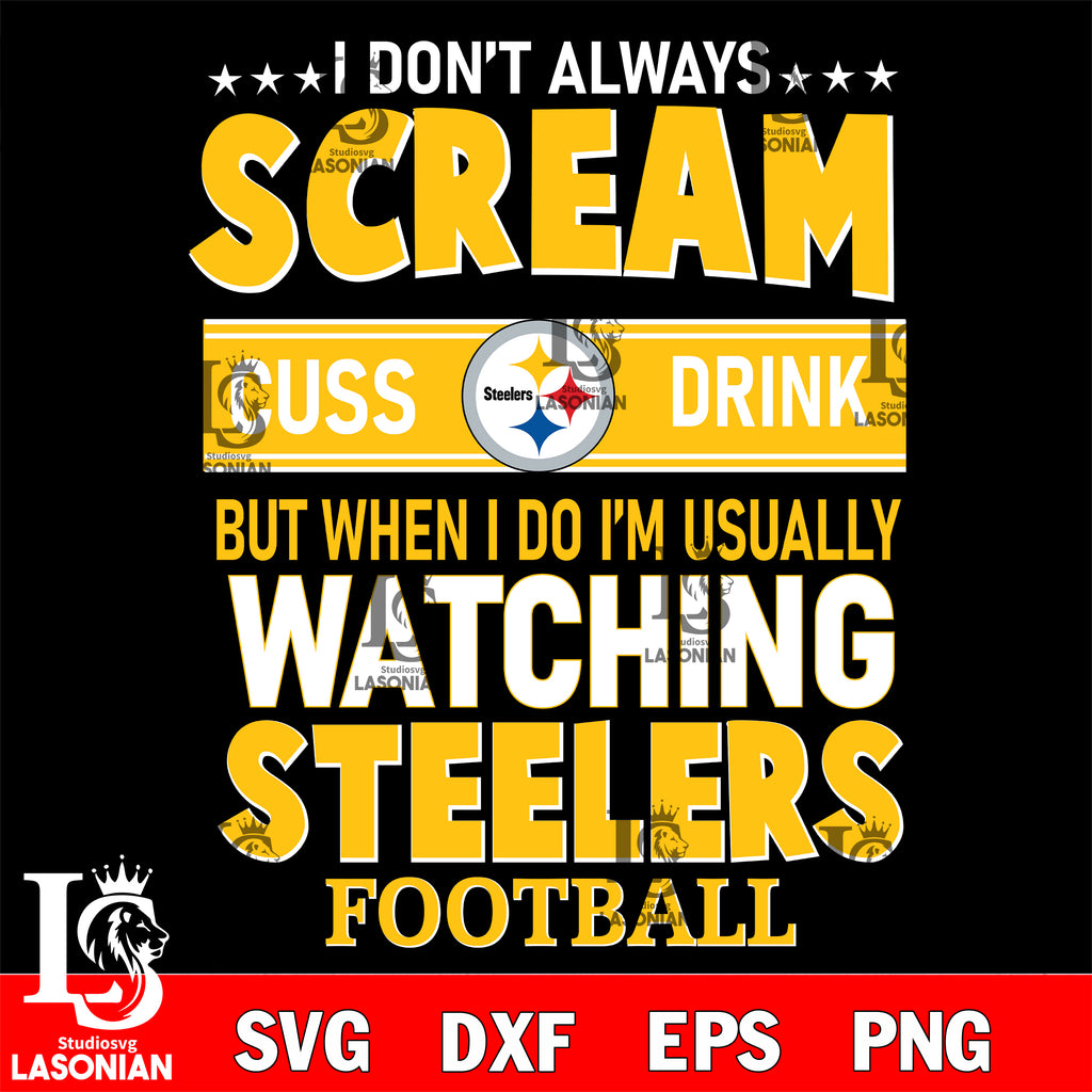 I don't always scream cuss drink but when i do i'm usually watching Pittsburgh Steelers svg eps dxf png file, Digital Download , Instant Download