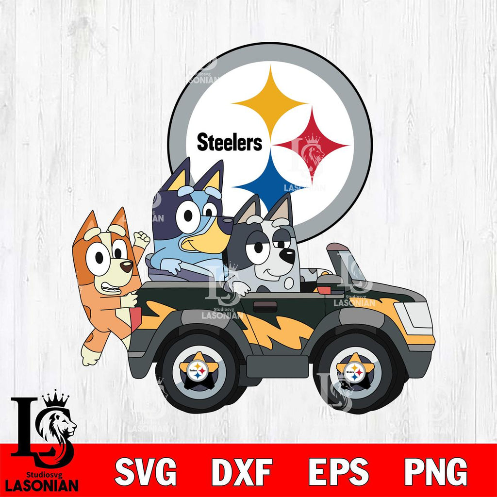 Pittsburgh Steelers bluey friends car is a digital download, no physical product will be shipped. Once you've downloaded the file, you can embark on a variety of personal projects.