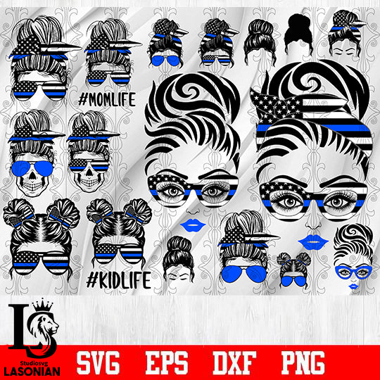 Messy Bun Police bundle svg,2 bundle skull police svg eps dxf png file