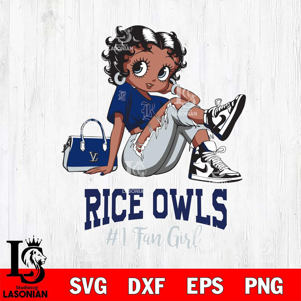 Plus, you can print these designs on a wide range of surfaces such as mugs, t-shirts, tumblers, flags, and more. Unleash your creativity and personalize your world with Rice Owls #1 Black Fan Girl Betty Boop